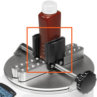 The Mark-10 Series TT01 Cap Torque Tester is designed to accurately measure the torque of bottle caps with a capacity of up to 100 lbFin [11.5 Nm]. Its adjustable posts securely grip a variety of container shapes and sizes, while additional options such as flat and adjustable jaws are available for customized profiles. This durable aluminum tester is user-friendly and suitable for both laboratory and production settings.