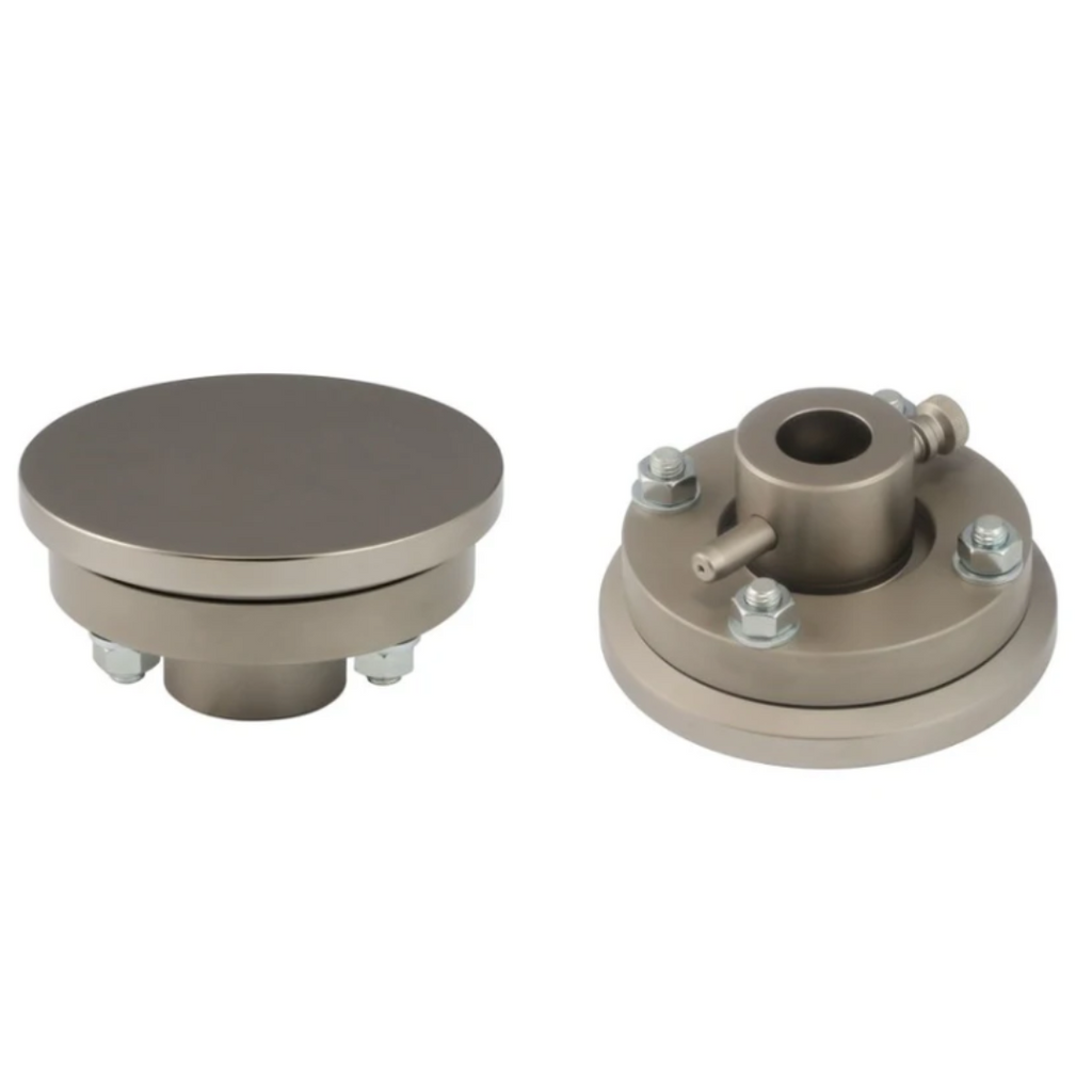 Self-aligning compression plates are designed to adjust ±1.5° angular displacement of the material being tested. This self-aligning compression plates can also be set to a fixed position by tightening the nuts.
