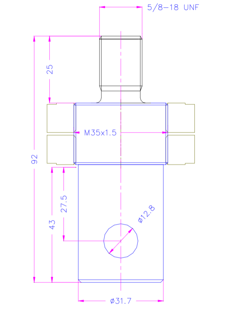 The Eye End Adapter (A317-5818) is designed to connect grips, fixtures, and accessories to force test stands and universal testing machines (UTMs). Featuring a 1.25 in. male eye end on one side and a 5/8-18 external thread on the other, it provides a secure mechanical interface between test frames and load-bearing attachments.