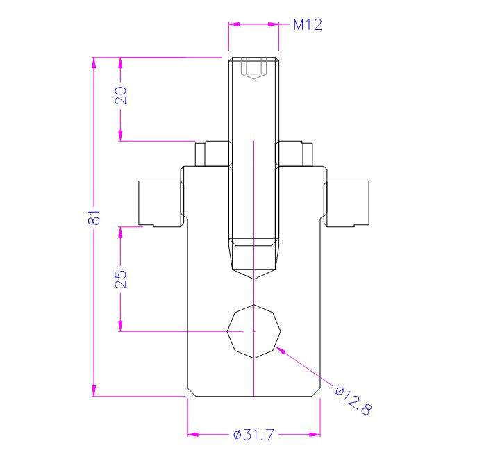 The Eye End Adapter (A317-M12) is designed to connect grips, fixtures, and accessories to force test stands and universal testing machines (UTMs). Featuring a 1.25 in. male eye end on one side and a M12x1.75 external thread on the other, it provides a secure mechanical interface between test frames and load-bearing attachments.