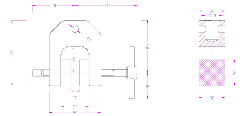 | VG5k-316-P30 | (1) Stainless steel vice grip with set of 30 x 30 mm pyramid jaws |